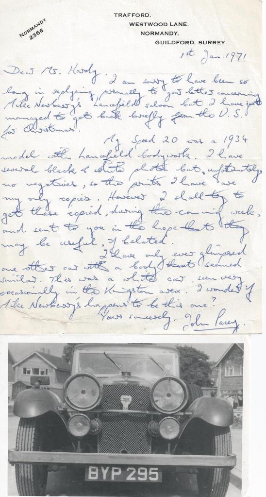 Previous Image Next Image 11890 Speed 20 SC Lancefield 129 1616 1197 This letter and photo from the archives of the late Arthur Hardy (129SE) of Punchbowl fame, shows a letter from a previous owner of a Lancefield Speed 20 SC. Does it survive?
