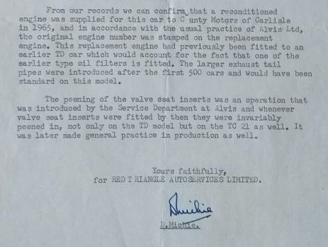 Previous Image Next Image letter on engine numbering Lee 1970 An extract from a letter of 1970 confriming the practice of renumbering reconditioned engines. Like Loading...