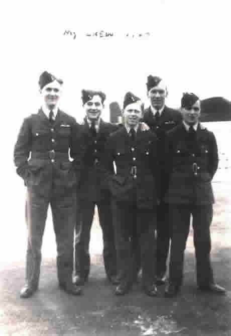 Wartime photos of my Father and his crew when he was on operations on A-W. Whitley’s; far left of the photo is Sgt.Thurling, killed in a Whitley 3rd March 1940 returning from a raid on Cologne, and Sgt. Sayner, 3rd from the left in front of my Father, killed October 1942 in a Wellington 111 whilst with Pathfinder Squadron no. 157 during a raid on Cologne.