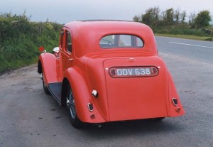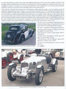 During production a slight increase in compression ratio was made. Output was 63.5 bhp. Fuel was fed from the rear mounted 11 gallon tank by an S.U. pump. An under bonnet tap switched supply from main to reserve. On the SC cars this tap was operated from the dashboard whilst the SB driver had to open the bonnet. The gearbox was a completely new design, unit mounted with the clutch bellhousing integral with the casing. It had synchromesh on the top three speeds only and drove the rear axle via the usual open propeller shaft. The standard axle ratio was 5:1 but some cars had 4.75:1 or 4.875:1 versions. The tourers generally had the higher ratios.