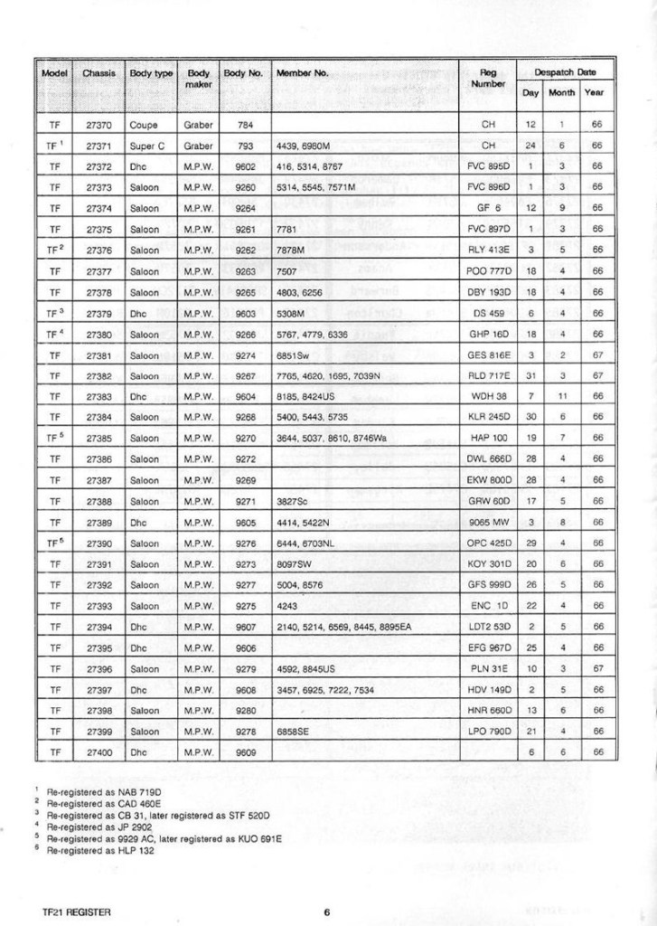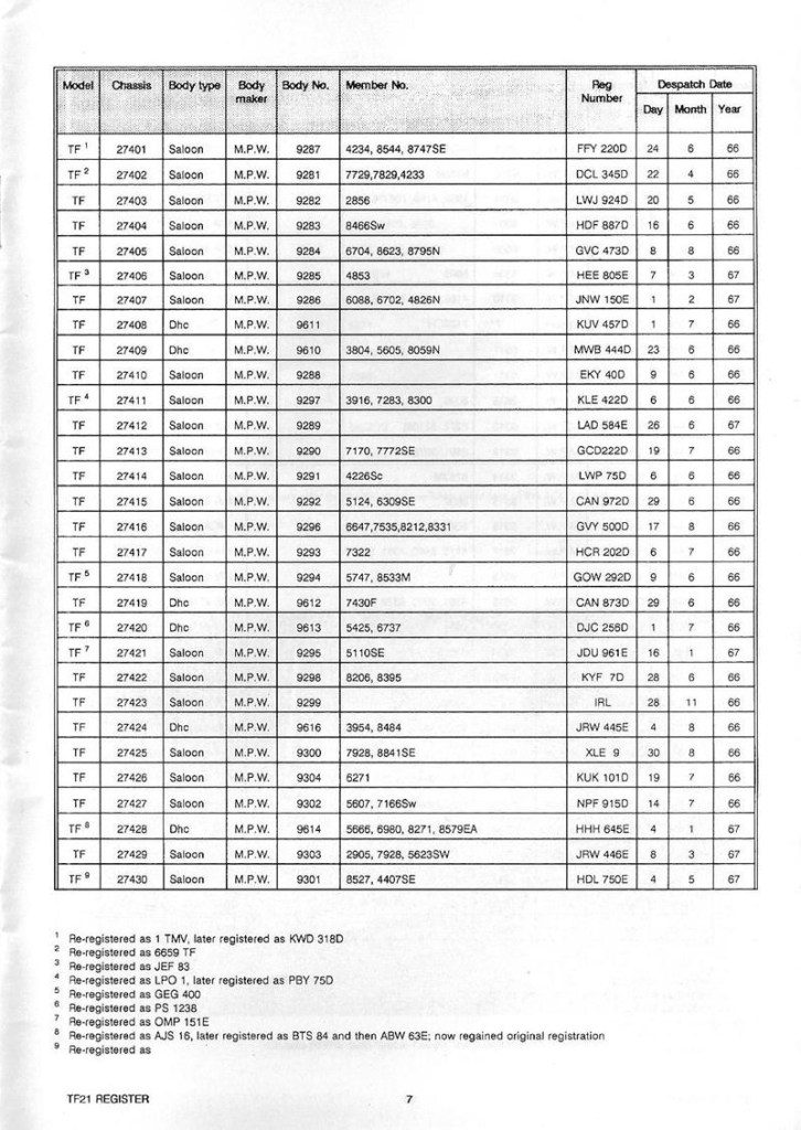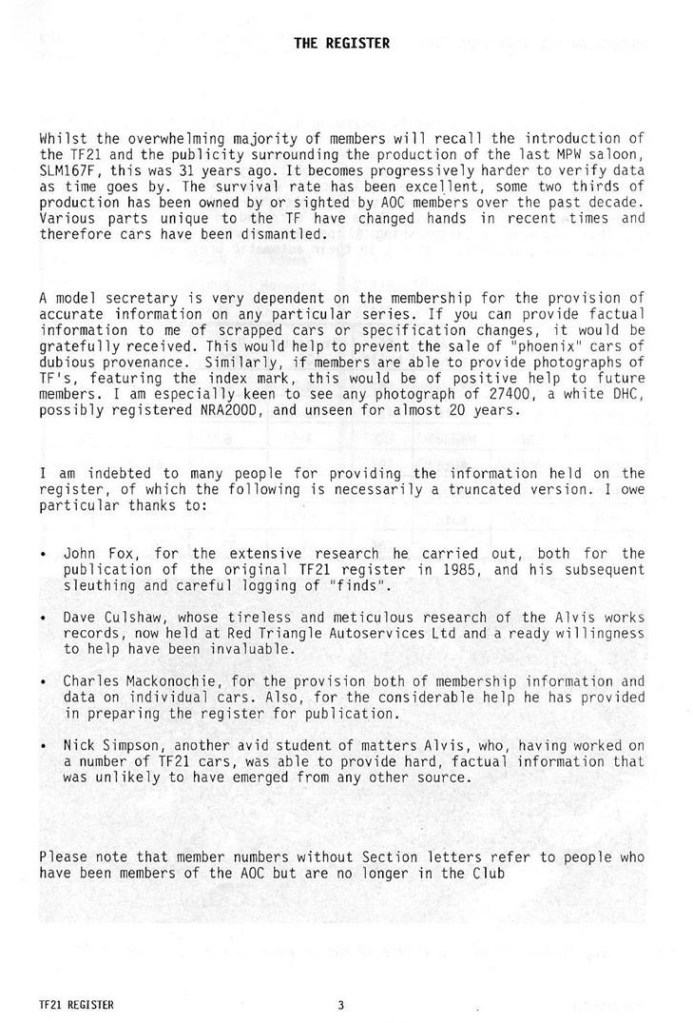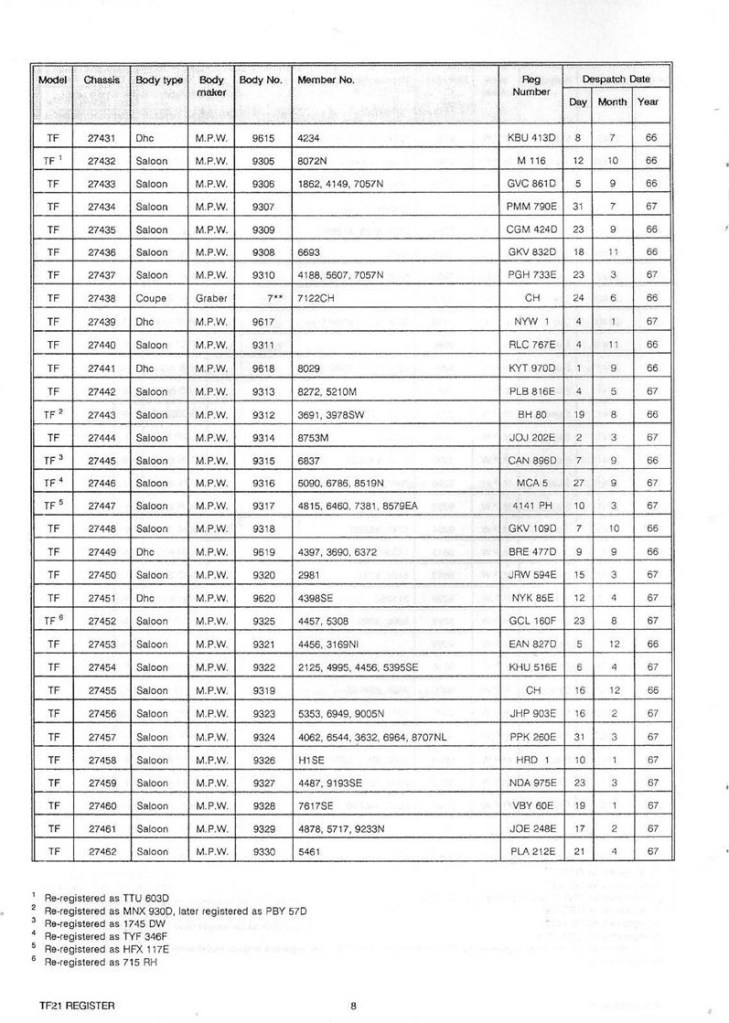 Do you own a TF21 or owned one in the past? If you would like to be included in the updated Register and receive a copy, click UPDATE YOUR DETAILS