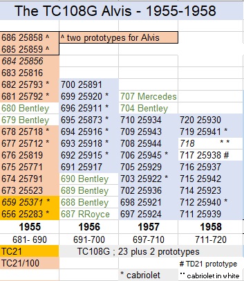 G stands for Graber, the Swiss coachbuilder who designed new bodies for the Alvis 3-Litre. In 1955 he produced more Alvis than any other marque. The TC108G was produced in small numbers until 1958 when the TD21 was introduced. Two prototypes were commissioned by Alvis, a white car shown on 1955 Motor Show stands and a seal grey demonstrator. Both were used as development cars. The new images below (donated by Steve Wright) show the grey car at Park Ward being stripped for examination at Park Ward:
