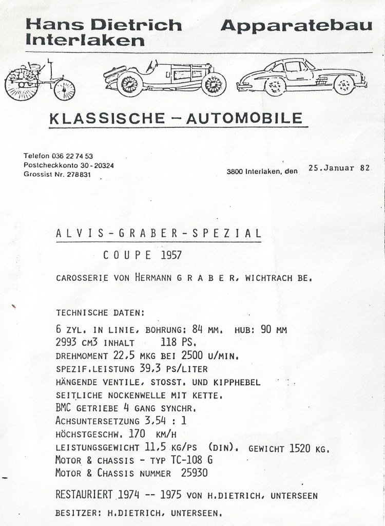 Hans Dietrich was a friend of Graber and we believe he acquired the car in 1967 and restored it.