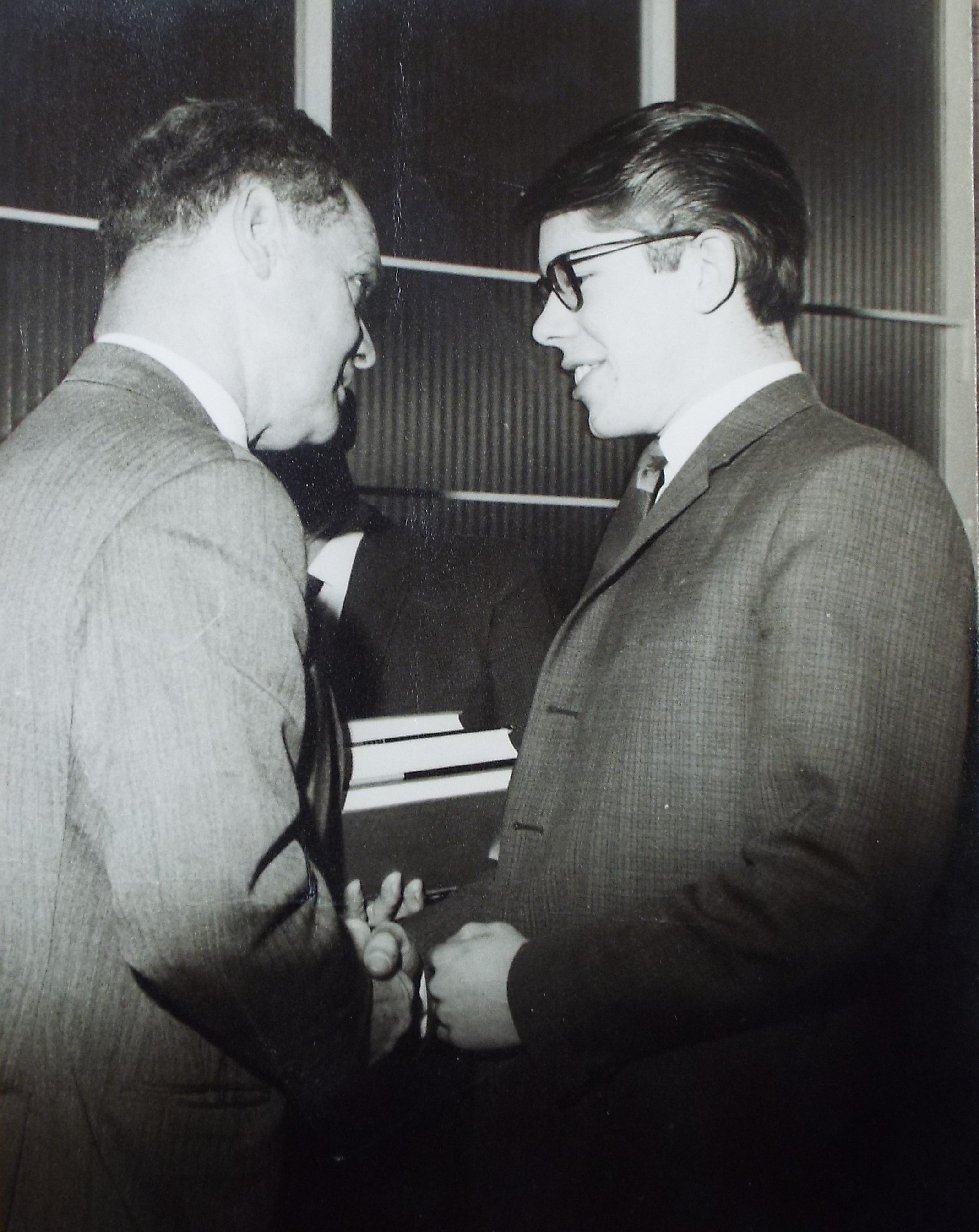 Next Image Ken Davies Douglas Bader 1965 Ken Davies receiving his Apprentice’s prize from Douglas Bader in 1965