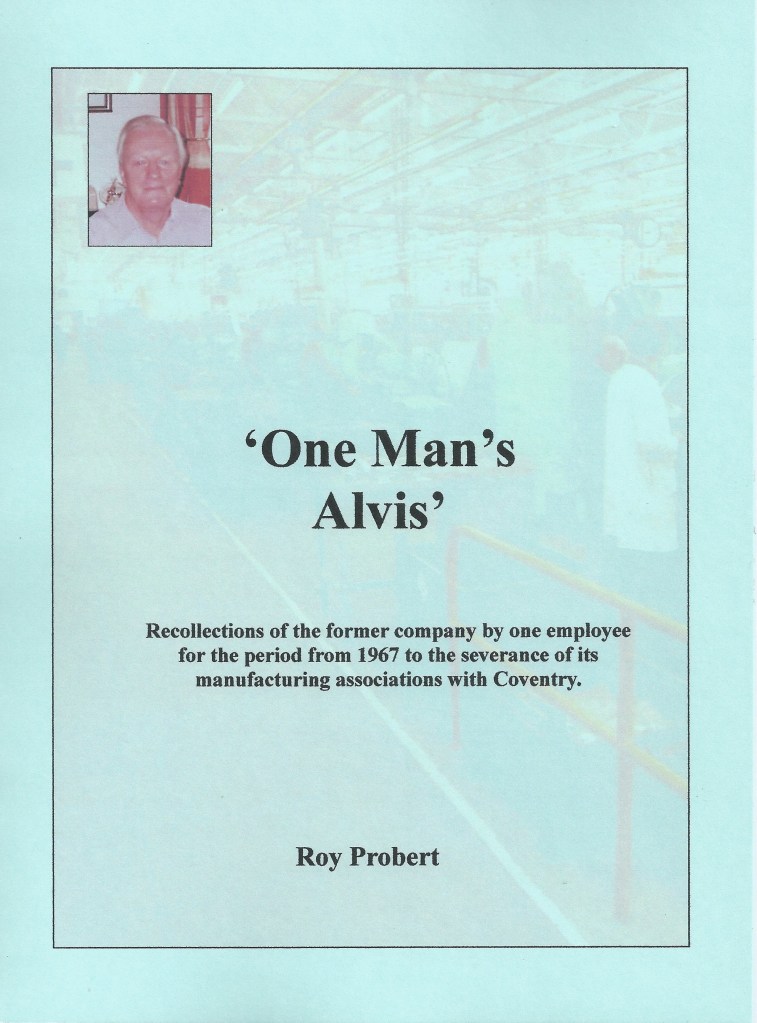 We were pleased to receive an unpublished work from the late Roy Probert which we intend to publish, “One Man’s Alvis” – it is not about cars but a fascinating read about life at Alvis after cars. We will be publishing extracts in due course and invite expressions of interest for a printed version.