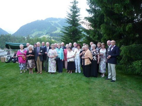 The Rallye des Veterans continued early on the Saturday morning with a driving test in car park of the hotel, since there were roadworks on the main streets of Gstaad. This also meant that the tour round Gstaad was cancelled and anyhow, we had enough driving the past few days and decided to take it easy and went into Gstaad. There we met with all participants on the railway station to enter reserved wagons bringing us up to Mount Rellerli. On the final station we entered big ski-lifts which brought us up to the station, where a Swiss farmer’s lunch had been prepared for us : lots of pork knuckles, bratwurst, cooked ham and cheese watered by good beers and wines. We needed the afternoon for a snooze and to be ready for the Gala Dinner which was stylish but not formal black tie.
