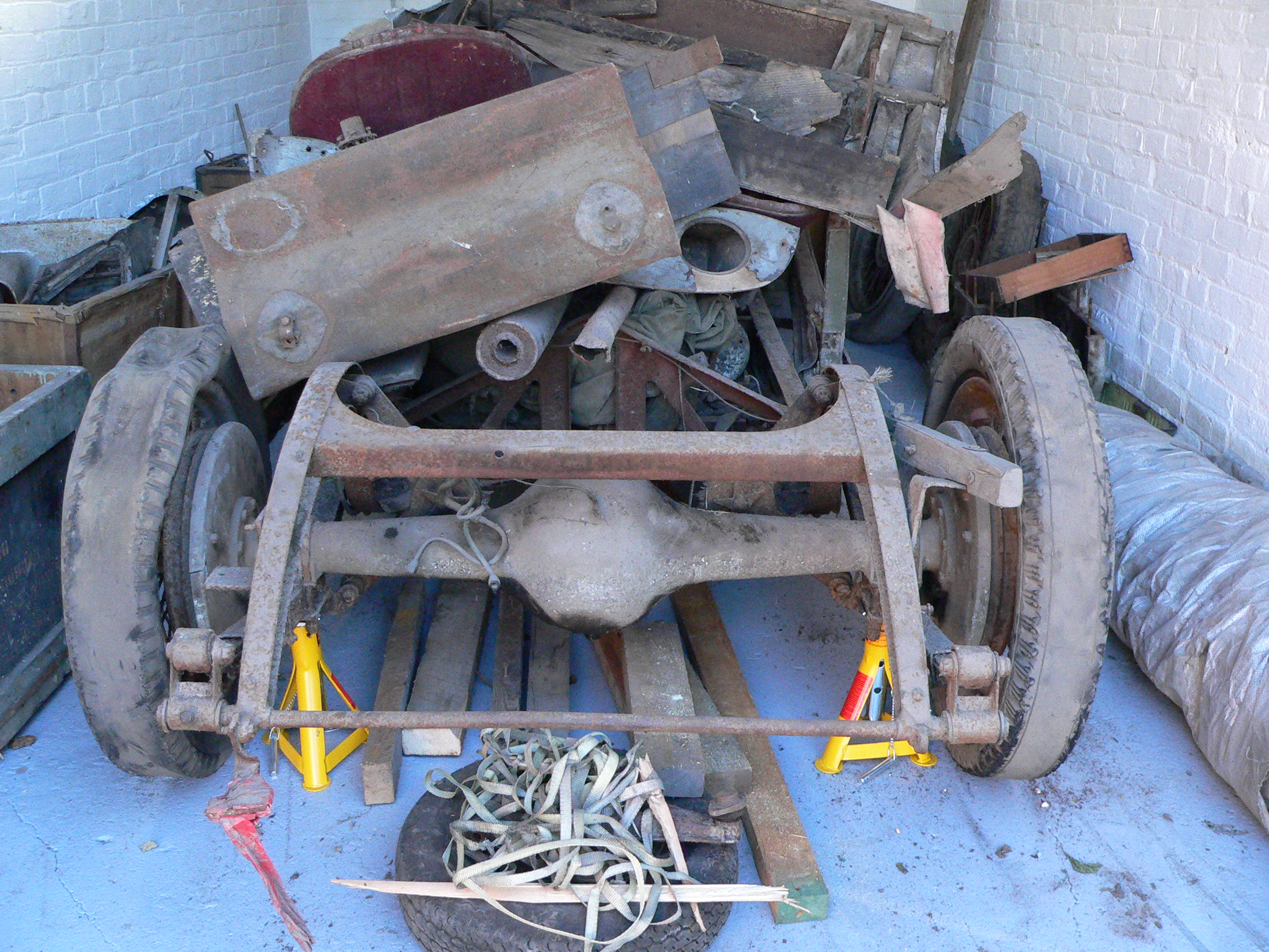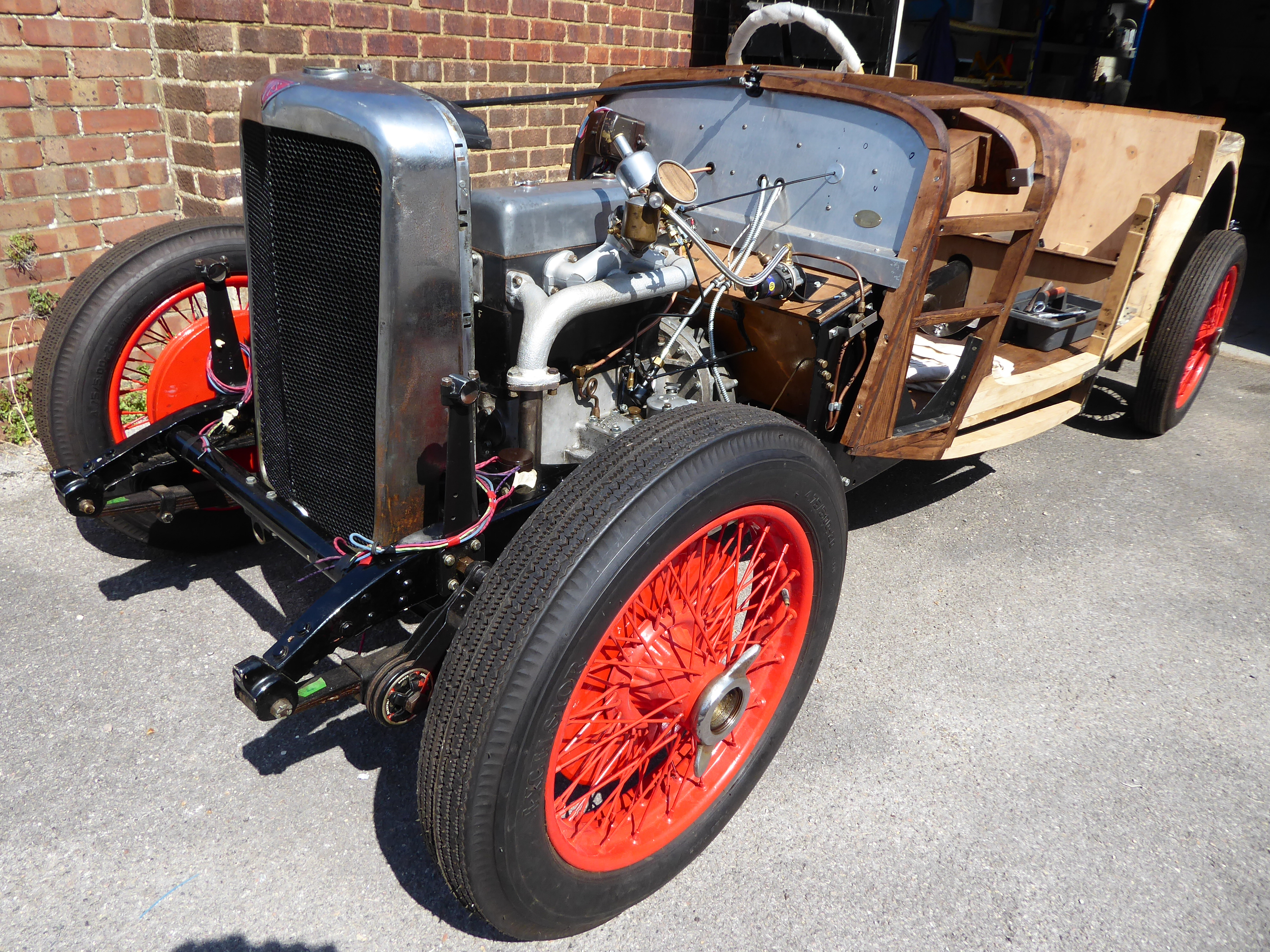 Work on the car started shortly thereafter and, as of today, it awaits clothing in bodywork as much of the original has, over the years, been lost, stolen or deteriorated. The car has been restored from the barest chassis up and the engine, brakes, rear axle etc. refurbished, replaced or renewed and the ash framing completely replaced as the original Cross and Ellis woodwork was either rotten or eaten away by woodworm. The engine, however, having been silent for around 60 years, started last August and runs beautifully.