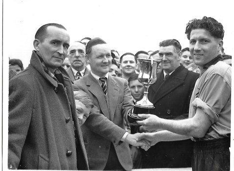 Previous Image Next Image presenting the TG John Cup in April 1954 and a clipping from the Coventry Evening Telegraph. This cup was awarded in a knockout competition for one of the local Midland football leagues. The fina